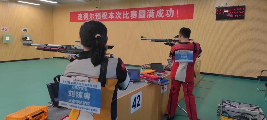 通过激烈的角逐,刘尧顶住压力,奋力拼搏最终取得男子乙组10米气步枪第三名,刘镓睿取得女子乙组50米步枪卧射第四名的好成绩。