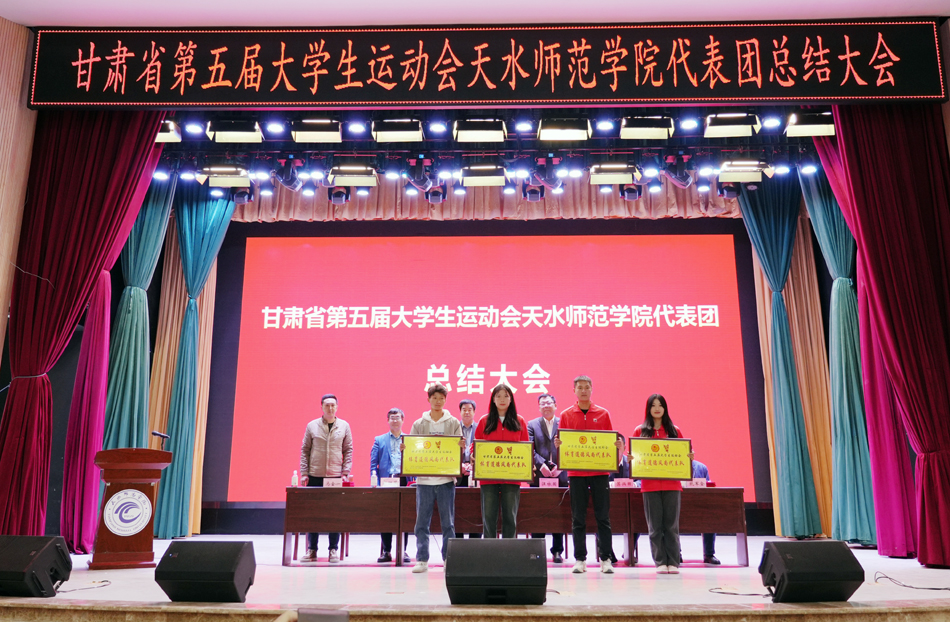 教务处处长郭昭第宣读了《甘肃省教育厅 甘肃省体育局 共青团甘肃省委关于公布甘肃省第五届大学生运动会获奖名单的通知》,beat365官方网站院长苏兴田宣读了校体委表彰决定。大会为体育道德风尚代表队、学校最佳组织奖、优秀运动员代表、优秀工作者颁发了奖牌和证书。教练员、运动员代表分别作了发言。