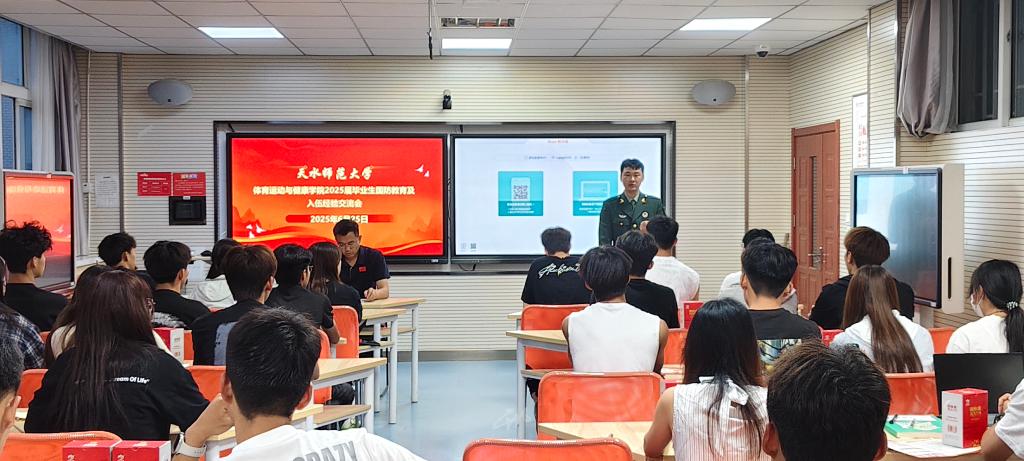 2025年6月25日,beat365官方网站在2号教学楼323智慧教室举行2025届毕业生国防教育及在校学生应征入伍交流会。此次活动由学院辅导员、退伍复学学生代表、在校学生代表共40余人参与。会上,学院精心为每位参会毕业生发放了纪念品,这份纪念品不仅是对毕业生的关怀,更承载着对他们投身国防事业的期许,激励着他们积极响应国家号召,投身国防建设,书写热血青春。