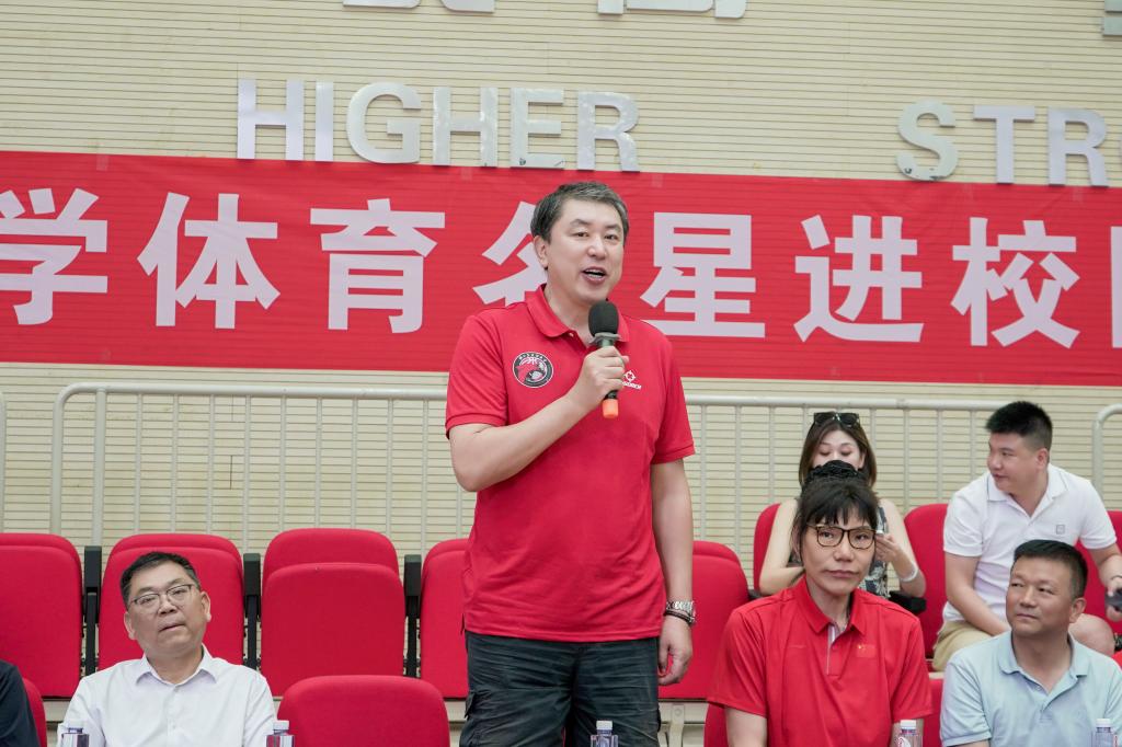欢迎仪式上,汪咏国致辞,对郑海霞、王立彬来我校表示最诚挚的敬意与感谢,并强调了体育育人在高校人才培养中的重要价值。