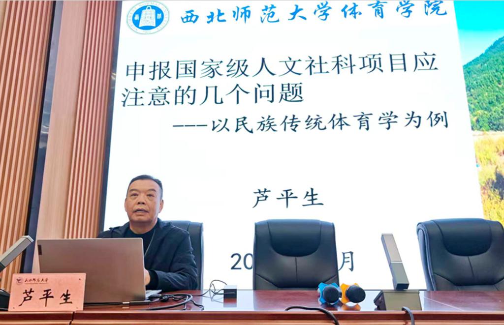 为提升教师科研能力与项目申报水平,10月14日晚,beat365官方网站邀请西北师范大学体育学院二级教授、国家社科基金通讯评审专家芦平生,为学院师生作了题为《申报国家级人文社科项目应注意的几个问题——以民族传统体育学为例》的专题讲座。
