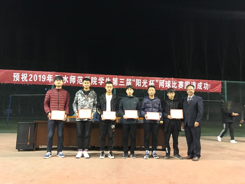 11月14日晚,天水师范学院大学生第三届“阳光杯”网球赛在网球场圆满落幕,本届比赛设男单、男双、女单、女双和混双五个单项,共有来自全校13个二级学院的257名运动员参加比赛。