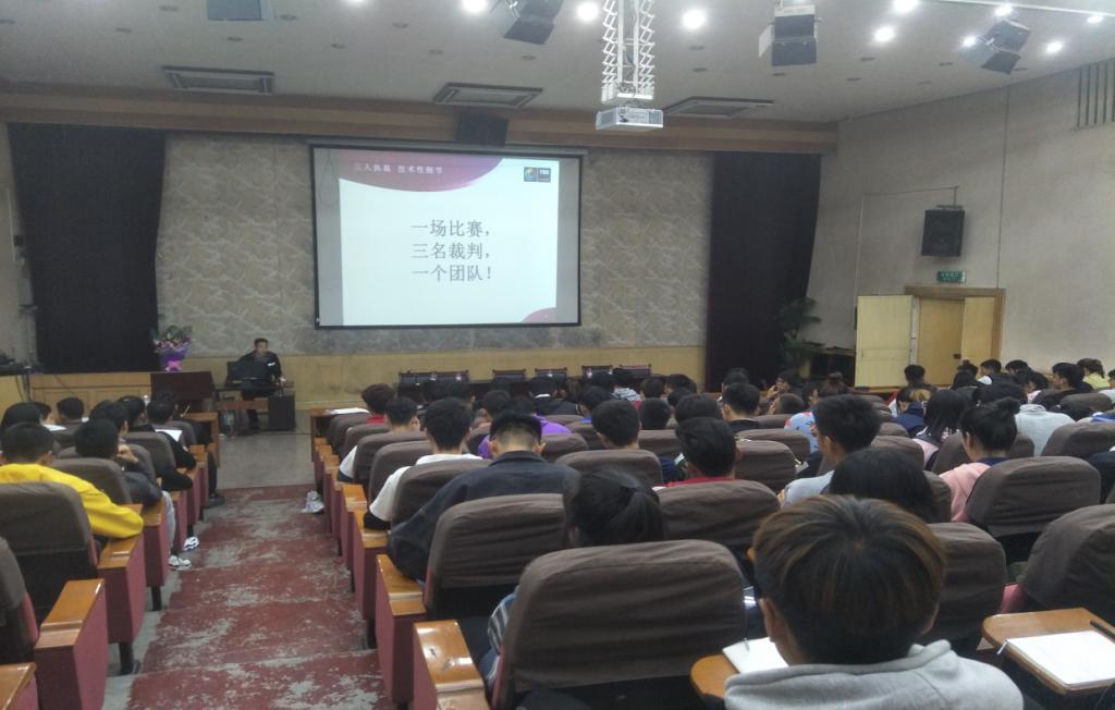 近日,为了提高我校篮球裁判员的业务水平,在天水师范学院学生第二十届暨教职工第十五届“园丁杯”篮球比赛开蔗之际,我们有幸邀请到兰州城市学院体育学院副院长、国家级裁判员、甘肃省执裁WCBA联赛裁判罗睿教授,苏波、张飞等国家级裁判员为我校篮协的裁判员们讲解裁判法。