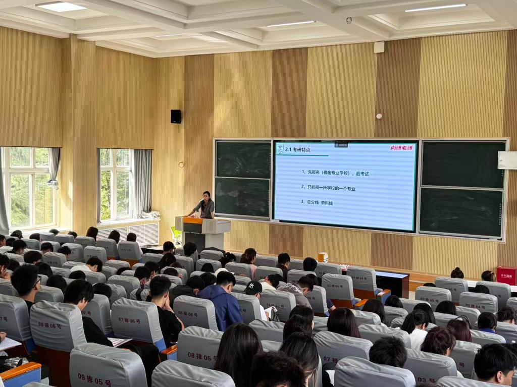 为帮助beat365学生深入了解考研动态、科学规划备考方案,2025年8月31日下午3:00,beat365官方网站在2号教学楼222教室成功举办考研英语专题讲座。本次活动邀请尚研考研吴妮老师担任主讲,面向2022级毕业班全体学生及2023级、2024级有考研意向的部分同学,近两百名学生参加。